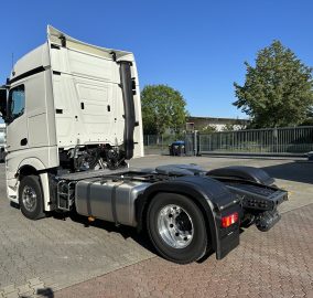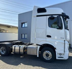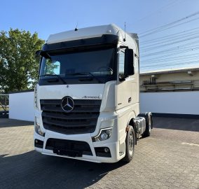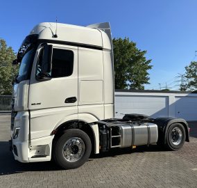 Abgasnorm EURO 6, Ablage über Frontscheibe mit Deckel, Achskonfiguration: 4x2, Actros 5, Actros Fahrerhaus L, Anfahr-/Frontspiegel beheizt, Anhänger Elektro und Bremsanschluss niedrig, Anhängersteckdose 24V / 15-polig, Aufstieg an Fahrerhaus links, Auspuff nach rechts außen, Ausstattungs-Paket: Powertrain 2, Batterien nebeneinander angeordnet, Differentialsperre Hinterachse, Drehmomenterhöhung 12. Gang, Druckluftanschluss im Fahrerhaus, Druckluftbehälter Stahl, Drucklufteinheit mit Kondenswasserüberwachung, Drucklufteinheit mittel, Einschaltautomatik für Fahrlicht (Lichtsensor), Fahrassistenz-System: Attention-Assist (Müdigkeitserkennungs-Sensor), Fahrassistenz-System: Autonomer Notbrems-Assistent (Active Brake-Assist 5), Fahrassistenz-System: Spurhalteassistent, Fahrerhaus: Fahrerhauseinstieg starr, Fahrerhaus: Interieur-Paket Chrom, Fahrerhaus: Kippeinrichtung hydraulisch, Fahrerhaus: L BigSpace, 2,50 m, Boden eben, Fahrerhaus: stahlgefedert, Komfort, Fahrzeug-Umrissleuchten LED, Federung: Blatt / Luft, Fensterheber elektrisch, Frontscheibe getönt, Fzg. ohne Rückwandfenster, Generator 100 A, geregelt, Geschwindigkeits-Begrenzeranlage, Harnstofftank (AdBlue): 60 Ltr., Hinterachse mit aktiver Schmierung, ungeregelt, Hinterachse Tellerrad 440, Karosserie/Aufbau: Sattelzugmaschine, Komfortliege unten, Komfortschließanlage, Lenkhelfpumpe elektronisch geregelt, Lenkrad mit Multifunktion, Luftansaugung hinter Fahrerhaus, Luftpresser 2-stufig, Lufttrockner beheizt, Motor 12,8 Ltr. - 330 kW R6 Diesel (OM 471), Motorvariante OM 471, Nutzungsart: Fernverkehr, Radstand nicht definiert, Rampenspiegel, Restwärmeausnutzung, Scheibenbremsen Vorder- und Hinterachse, Schlüssel mit Fernbedienung (2), Seitenmarkierungsleuchten LED blinkend, Sitze im Fahrerhaus: Beifahrerfunktionssitz, Sitze im Fahrerhaus: Fahrersitzlehne umklappbar, Spritzschutz vorn, Stabilisator Vorderachse, Staufächer mit Deckel hinter Fahrer- und Beifahrersitz, Steckdose 12V im Beifahrerfussraum, Tachograph / EG-Kontrollgerät, Truck Data Center 7 (Flottenmanagement-System), Unterbodenverkleidung aerodynamisch geformt, Unterfahrschutz vorn, Vorbereitung CB-Funk, Vorbereitung Mauterfassung, Vorderachse gekröpft, Wasserpumpe geregelt, Zul. Gesamtgewicht 18,00 t, Zusatzheizung (Wasser)