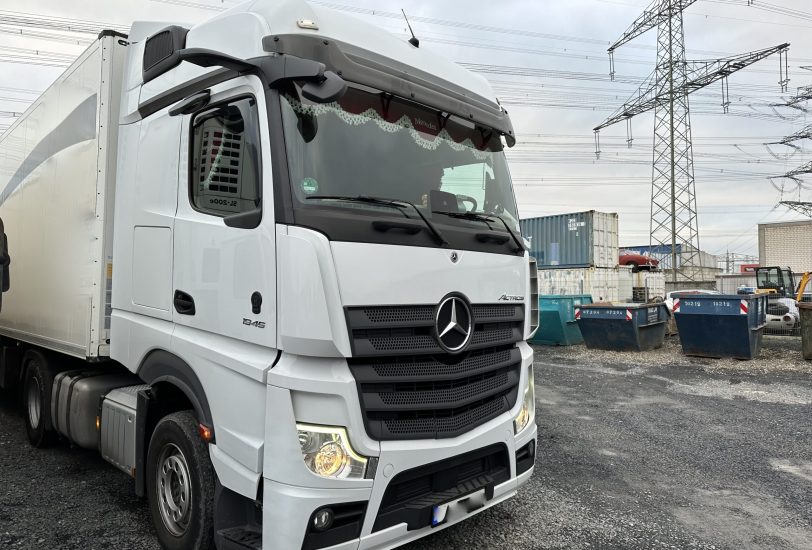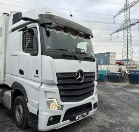 Abgasnorm EURO 6, Ablage über Frontscheibe mit Deckel, Achskonfiguration: 4x2, Actros 5, Actros Fahrerhaus L, Anfahr-/Frontspiegel beheizt, Anhänger Elektro und Bremsanschluss niedrig, Anhängersteckdose 24V / 15-polig, Aufstieg an Fahrerhaus links, Auspuff nach rechts außen, Ausstattungs-Paket: Powertrain 2, Außenspiegelkamera MirrorCam, Batterie 220 Ah, Batterien nebeneinander angeordnet, Differentialsperre Hinterachse, Drehmomenterhöhung 12. Gang, Druckluftanschluss im Fahrerhaus, Druckluftbehälter Stahl, Drucklufteinheit mit Kondenswasserüberwachung, Drucklufteinheit mittel, Einschaltautomatik für Fahrlicht (Lichtsensor), Fahrassistenz-System: Attention-Assist (Müdigkeitserkennungs-Sensor), Fahrassistenz-System: Autonomer Notbrems-Assistent (Active Brake-Assist 5), Fahrassistenz-System: Spurhalteassistent, Fahrerhaus: Fahrerhauseinstieg starr, Fahrerhaus: Interieur-Paket Chrom, Fahrerhaus: Kippeinrichtung hydraulisch, Fahrerhaus: L BigSpace, 2,50 m, Boden eben, Fahrerhaus: stahlgefedert, Komfort, Fahrzeug-Umrissleuchten LED, Federung: Blatt / Luft, Fensterheber elektrisch, Frontscheibe getönt, Fzg. ohne Rückwandfenster, Generator 100 A, geregelt, Geschwindigkeits-Begrenzeranlage, Hinterachse mit aktiver Schmierung, ungeregelt, Hinterachse Tellerrad 440, Karosserie/Aufbau: Sattelzugmaschine, Komfortliege unten, Komfortschließanlage, Lenkhelfpumpe elektronisch geregelt, Lenkrad mit Multifunktion, Luftansaugung hinter Fahrerhaus, Luftpresser 2-stufig, Lufttrockner beheizt, Motor 12,8 Ltr. - 330 kW R6 Diesel (OM 471), Motorvariante OM 471, Nutzungsart: Fernverkehr, Radstand nicht definiert, Rampenspiegel, Restwärmeausnutzung, Scheibenbremsen Vorder- und Hinterachse, Schlüssel mit Fernbedienung (2), Seitenmarkierungsleuchten LED blinkend, Sitze im Fahrerhaus: Beifahrerfunktionssitz, Sitze im Fahrerhaus: Fahrersitzlehne umklappbar, Spritzschutz vorn, Stabilisator Vorderachse, Staufächer mit Deckel hinter Fahrer- und Beifahrersitz, Steckdose 12V im Beifahrerfussraum, Tachograph / EG-Kontrollgerät, Truck Data Center 7 (Flottenmanagement-System), Unterbodenverkleidung aerodynamisch geformt, Unterfahrschutz vorn, Vorbereitung CB-Funk, Vorbereitung Mauterfassung, Vorderachse gekröpft, Wasserpumpe geregelt, Zul. Gesamtgewicht 18,00 t, Zusatzheizung (Wasser)